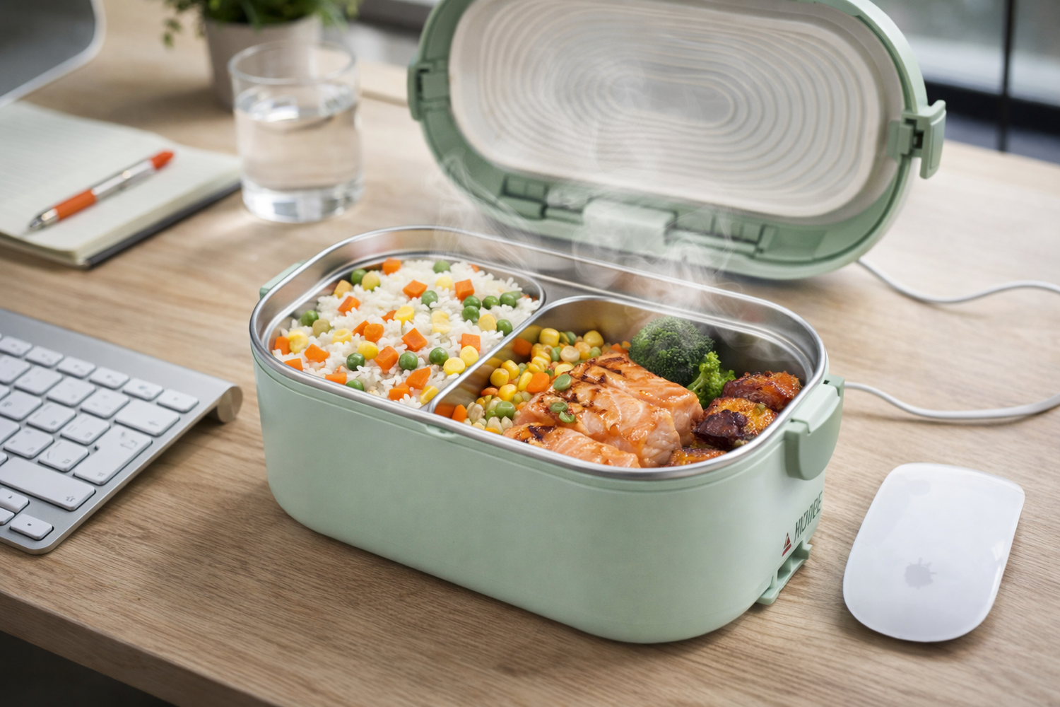 Cette lunch box chauffante réchauffe votre plat directement sur votre bureau, sans installation compliquée.
